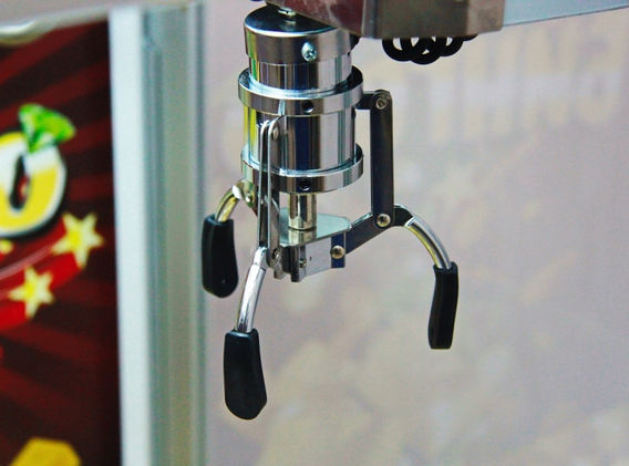 Для выигрыша необходимо схватить игрушку, после этого клешня сама отнесет ее горке с толкателем. Толкатель будет направлять игрушку к призовому окну.